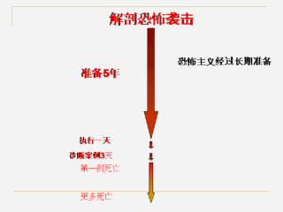 很少人意识到恐怖主义的进程。它一般经过长期准备,短期实施。最有效的预防是在准备阶段制