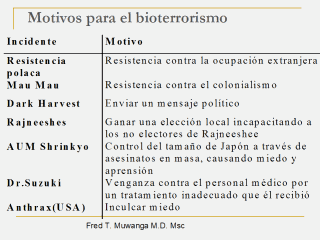 Las razones para utilizar el bioterrorismo fueron variadas, y no muy