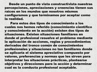 alguna regla derivada del conocimiento profesional. Las situaciones a