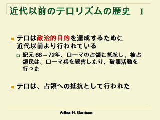 テロは、政治的な変革を求めるが、変革の手段を他には持たない人々によって、武器として用いられてきた。