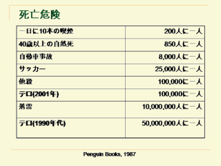 テロによる死亡は、他の原因と比較してみると、非常に低いことがわかる。