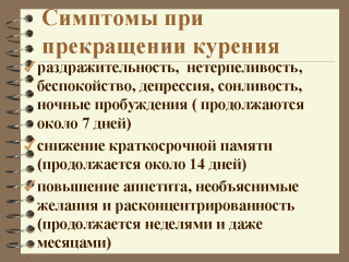 Вы должны знать и объяснять, что основные симптомы отказа от никотина прекратятся в течение 7-10 дней.