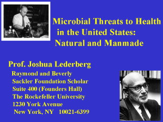 coming to the Rockefeller University in 1978. His life-long research, for which he received the Nobel Prize in 1958 (at the age of 33), has been in genetic structure and function in microorganisms. He has been actively involved in artificial intelligence research (in computer science) and in the NASA experimental programs seeking life on Mars. He has also been a consultant on health-related matters for government and the international community, e.g., having had long service on WHO's Advisory Health Research Council. He has been a member of the National Academy of Sciences since 1957, was a charter member of the Institute of Medicine, and was elected Fellow of the American Association for the Advancement of Science in 1982. He has served as Chairman of the President's Cancer Panel, and of the Congress' Technology Assessment Advisory Council, as well as on numerous other consultative panels, including the regents of the National Library of Medicine. He received the U.S. National Medal of Science in 1989. From 1978 to 1990, Dr. Lederberg served as president of the Rockefeller University, where he continues his research activities in the genetics and evolution of bacteria and viruses. To get access to publicly available papers by Joshua Dederberg, use the following web site |