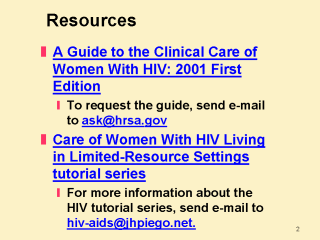University, on the subject of Care of Women with HIV Living in Limited-Resource Settings.