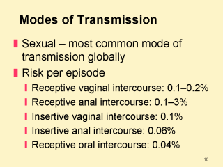 heterosexual, is the most common mode of HIV transmission. The magnitude of risk varies
