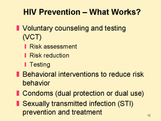 include: voluntary counseling and testing, or VCT, which includes risk assessment,