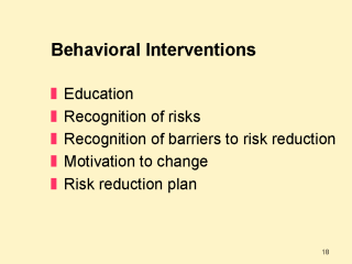 incidence. Behavioral interventions to prevent HIV infection include basic education about