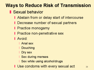 a number of ways to reduce the risk of sexual transmission of HIV. Delaying the start of
