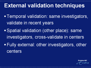 distinguished, including temporal, spatial and fully external validation. The strength of