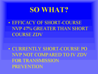 benefit in preventing perinatal HIV transmission - IV ZDV remains standard of care |