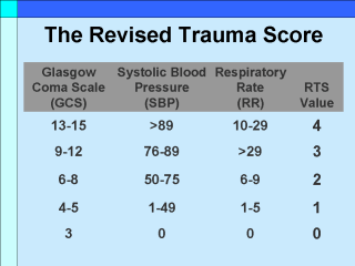 An RTS of less than 11 is used to indicate the need for transport to a designated trauma center.