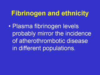 and Japanese population samples. Thromb Haemost 1995; 73(1):106-111. de Maat M, De Knijff P, Green FR, Thomas AE, Jespersen J, Kluft C. Gender-related association between b-fibrinogen genotype and plasma fibrinogen levels and linkage disequilibrium at the fibrinogen locus in Greenland Inuit. Arterioscler Thromb Vasc Biol 1995; 15:856-860.Whincup PH, Gilg JA, Papacosta O, Seymour C, Miller GJ, Alberti KG, Cook DG. Early evidence of ethnic differences in cardiovascular risk: cross sectional comparison of British South Asian and white children. BMJ 2002; 324(7338):635. Cook DG, Cappuccio FP, Atkinson RW, Wicks PD, Chitolie A, Nakandakare ER, Sagnella GA, Humphries S. Ethnic differences in fibrinogen levels: the role of environmental factors and the beta-fibrinogen gene. Am J Epidemiol 2001; 153(8):799-806. |