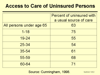 usual source of care. Source: Cunningham PJ. Next steps in incremental health insurance expansions: who is most deserving. Issue Brief 12. Washington, DC: Center for Studying Health System Change, 1998. |
