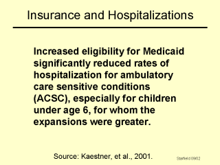 | Source: Kaestner R, Joyce T, Racine A. Medicaid eligibility and the incidence of ambulatory care sensitive hospitalizations for children. Soc Sci Med 2001; 52(2):305-313. |