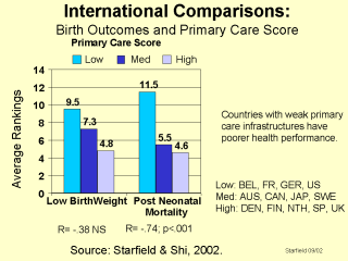 both low birthweight and postneonatal mortality, the stronger the primary care, the better