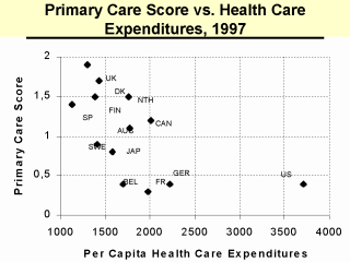 the fact that the stronger the primary care the lower the total health care expenditures.