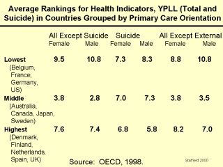 as sensitive to primary care services only. Source: OECD. OECD Health Data 1998. Paris: OECD Secretariat Health Policy Unit and Centre de Recherch, d'Etude et de Doucementation en Economie de la Santé, 1998. Source: Starfield B. Primary Care: Balancing Health Needs, Services, and Technology. New York: Oxford University Press, 1998. |