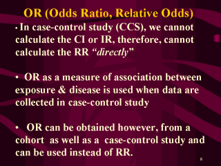 control study. However, under certain conditions, OR from CCS can be good estimate of RR] CCS = Case-control study |