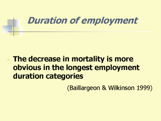 | Increasing the duration of employment will increase the effect since many sick people will leave or change the work into another safer work. |