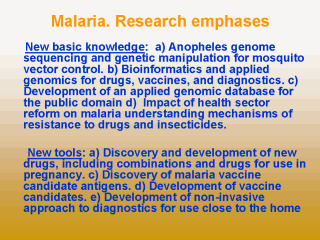 malaria control. c) Provision of evidence for policy changes on combination treatment and