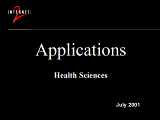 advanced networking services. This presentation contains examples of some high-performance networking applications and activities that are currently in progress throughout the Internet2 community in the area of the Health Sciences. If you have any comments or corrections regarding this presentation, please contact Susan Topol (stopol@internet2.edu). |