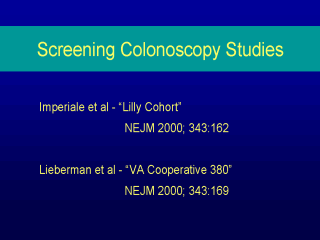 | There were two studies that were published just a little over a year ago in the New England Journal looking at colonoscopy. They assembled large cohorts of asymptomatic people and did a colonoscopy on them. These studies were meant to look at what colonoscopy detects that sigmoidoscopy doesn’t. |