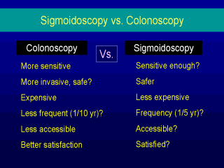 invasive so sigmoidoscopy is safer, although every sigmoidoscopy that is a positive means