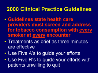 guidelines encourage health care providers to screen & address tobacco use at every
