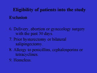 | We also excluded women who were post-abortion or gynecologic surgery, delivery – these women, I think everybody agrees, need to be hospitalized. |