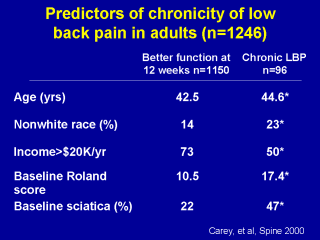 who weren’t better 12 weeks later. And the things that seemed to predict chronic back