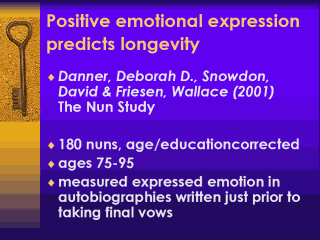 here. I learned that positive emotional expression predicts longevity. This study which is