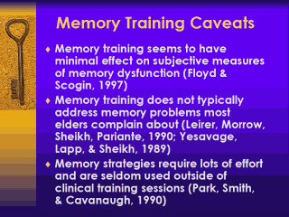 Memory training seems to have minimal effect on subjective measures of memory dysfunction.