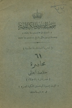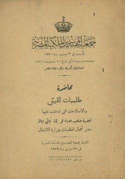 تذكار تشريف حضرة صاحب الجلالة الملك فؤاد الأول لدار الجمعية فى يوم الأربعاء ٢٤ شوال سنة ١٣٥٠ الموفق ٢ مارس سنة ١٩٣٢.