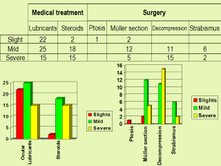 In most of the less affected cases (slight), the treatment consisted in ocular lubricant. While in the severe and mild ones, the use of steroids and surgery, similar to that reported by other authors.