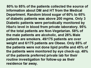not aware of Diabetic diet charts. 80% of the diabetic patients were not