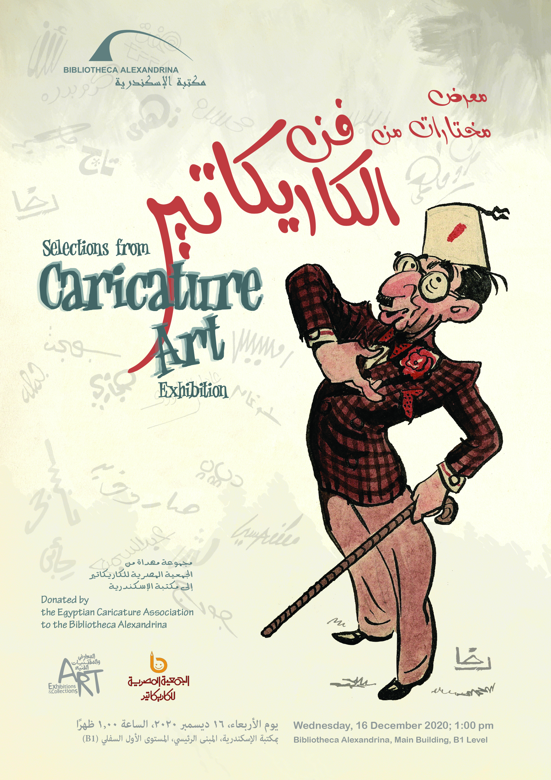 تفتتح إدارة المعارض والمقتنيات الفنية بمكتبة الإسكندرية معرض “مختارات من فن الكاريكاتير" يوم الأربعاء 16 ديسمبر 2020، الساعة 1:00 ظهرًا، بمكتبة الإسكندرية، المبنى الرئيسي، المستوى الأول السفلي (B1).