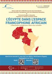 ينظم مركز الأنشطة الفرانكوفونية بمكتبة الإسكندرية بالتعاون مع جامعة سنجور بالإسكندرية المؤتمر السنوي للاحتفال باليوم العالمي للفرانكوفونية بعنوان: "مصر في الفضاء الإفريقي الفرانكوفوني"، وذلك على مدار يومي 30 و31 مارس 2021.