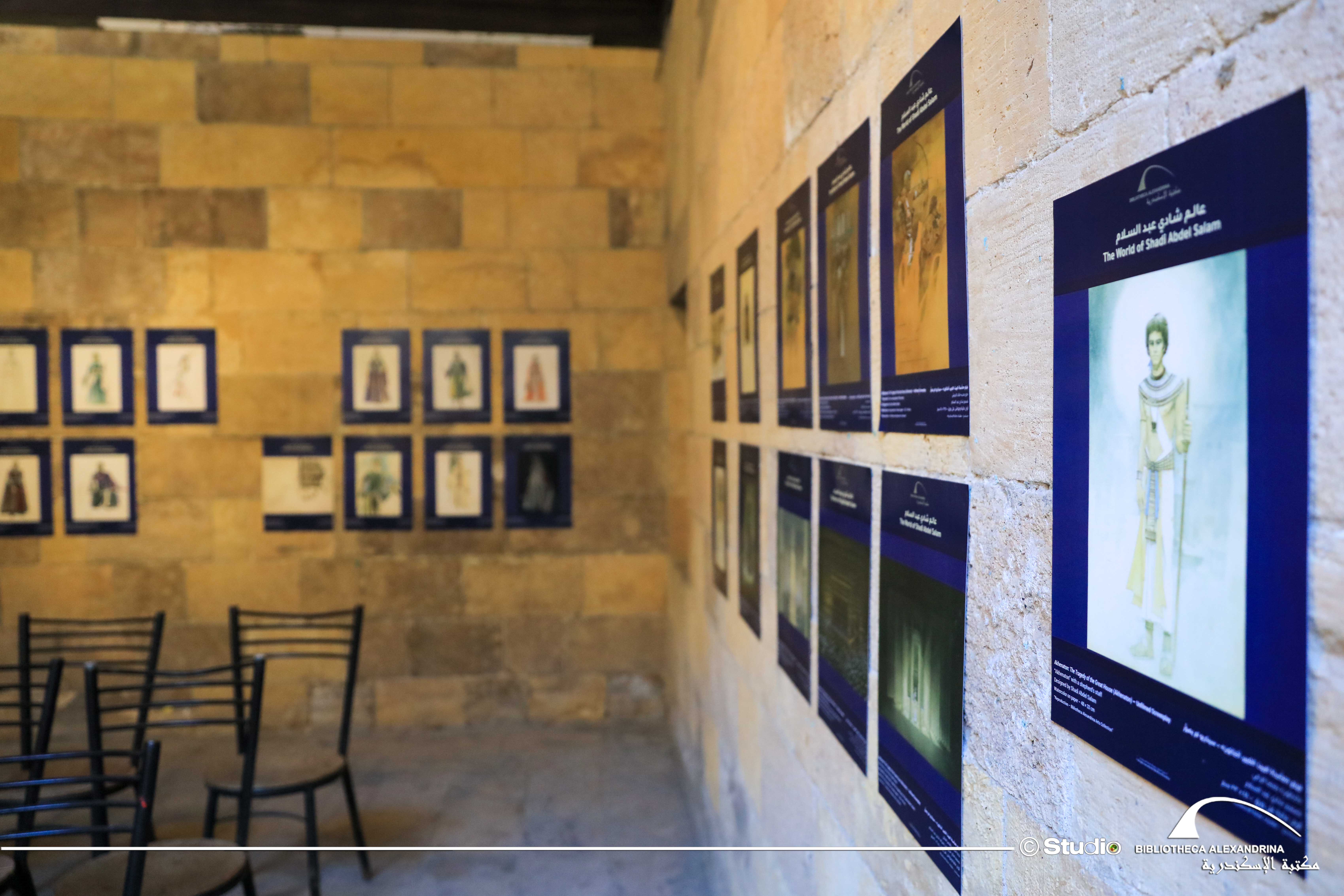 وتفخر مكتبة الإسكندرية بأن يكون ضمن أروقتها معرض "عالم شادي عبد السلام" والذي يضم ما يقرب من 350 عملًا فنيًا أصليًا تم إنتاجهم خلال مشوار حياته الفني.