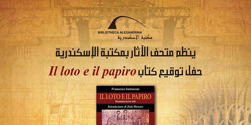 في إطار الاحتفال بالعيد الخامس عشر لافتتاح مكتبة الإسكندرية الجديدة في السادس عشر من أكتوبر كلَّ عام، المنبر الثقافي المصري العالمي الذي يشع ثقافة وفكرًا وفنًّا على العالم بأسره، يستضيف متحف الآثار بمكتبة الإسكندرية حفل توقيع كتاب  Il loto e il papiro؛ مسرحية أوبرالية عن مصر الفرعونية باللغة الإيطالية بعنوان «اللوتس والبردي» لأحد أشهر مؤلفي الدراما الإيطالية٬ المتأثر بالحضارة المصرية القديمة، المؤلف فرانشيسكو سانتوكونو. وسوف يتشرف حفل التوقيع بحضور المفكر السياسي البارز الأستاذ الدكتور مصطفى الفقي مدير مكتبة الإسكندرية٬ وعالم الآثار المصرية الشهير الأستاذ الدكتور زاهي حواس.