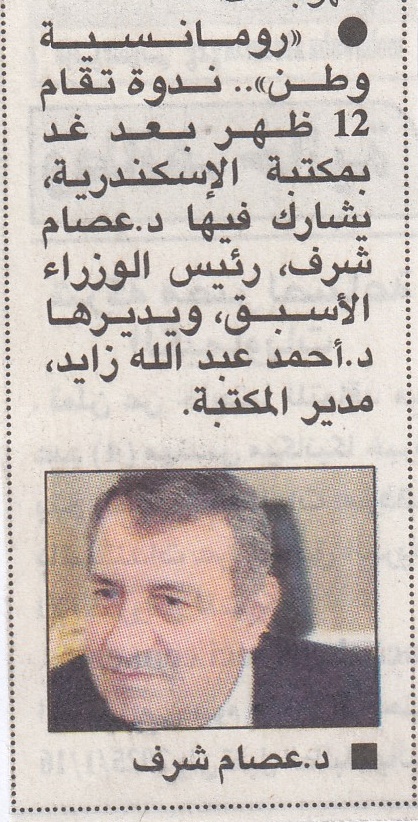 ندوة "رومانسية وطن" تفام بمكتبة الإسكندرية