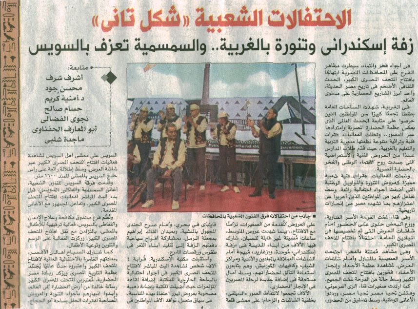 03 نوفمبر 2025 الاحتفالات الشعبية "شكل تاني" زفة إسكندراني وتنورة بالغربية في افتتاح المتحف الكبير الأخبار