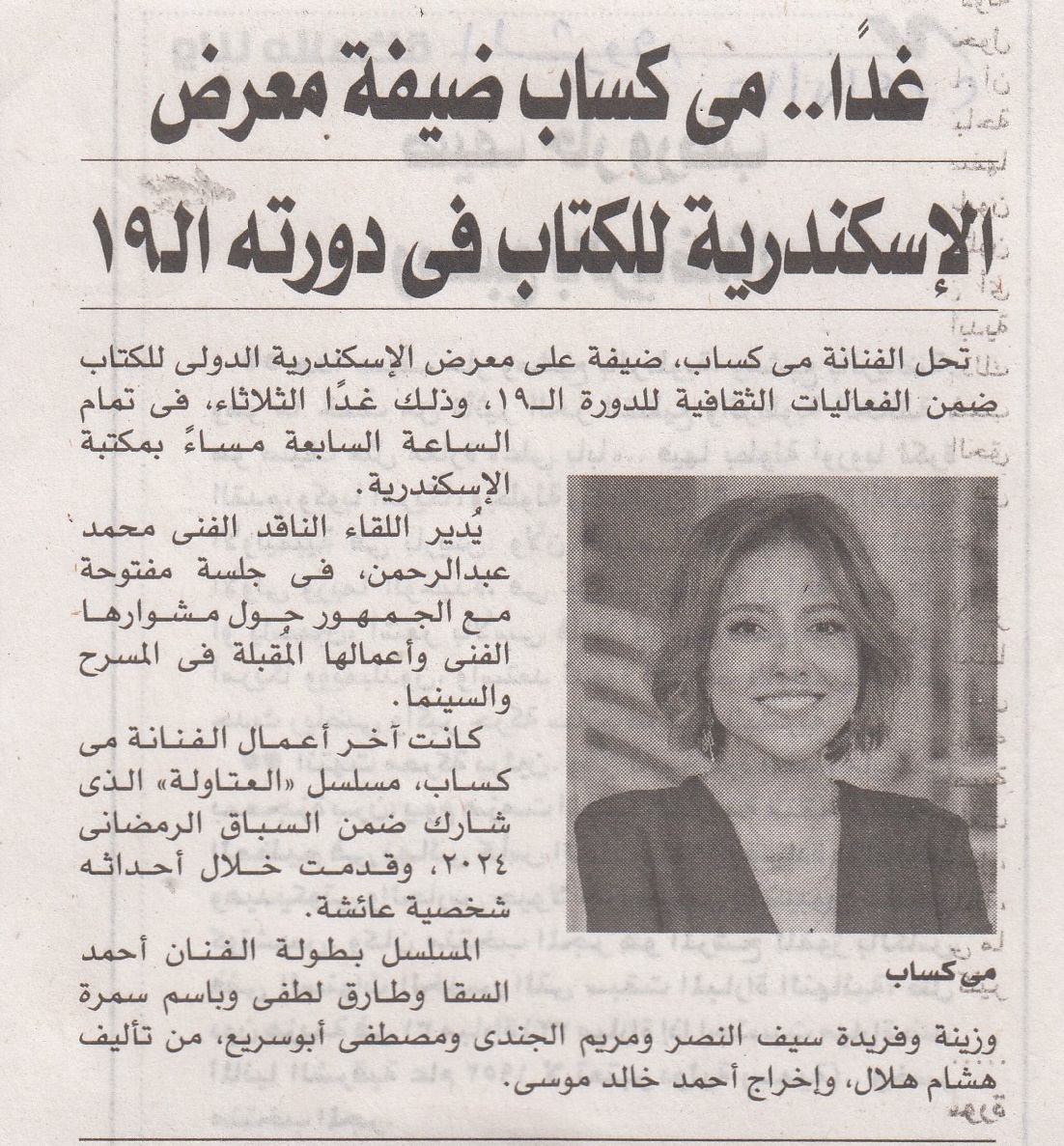 غداً.. مي كساب ضيفة معرض الإسكندرية للكتاب في دورته ال١٩