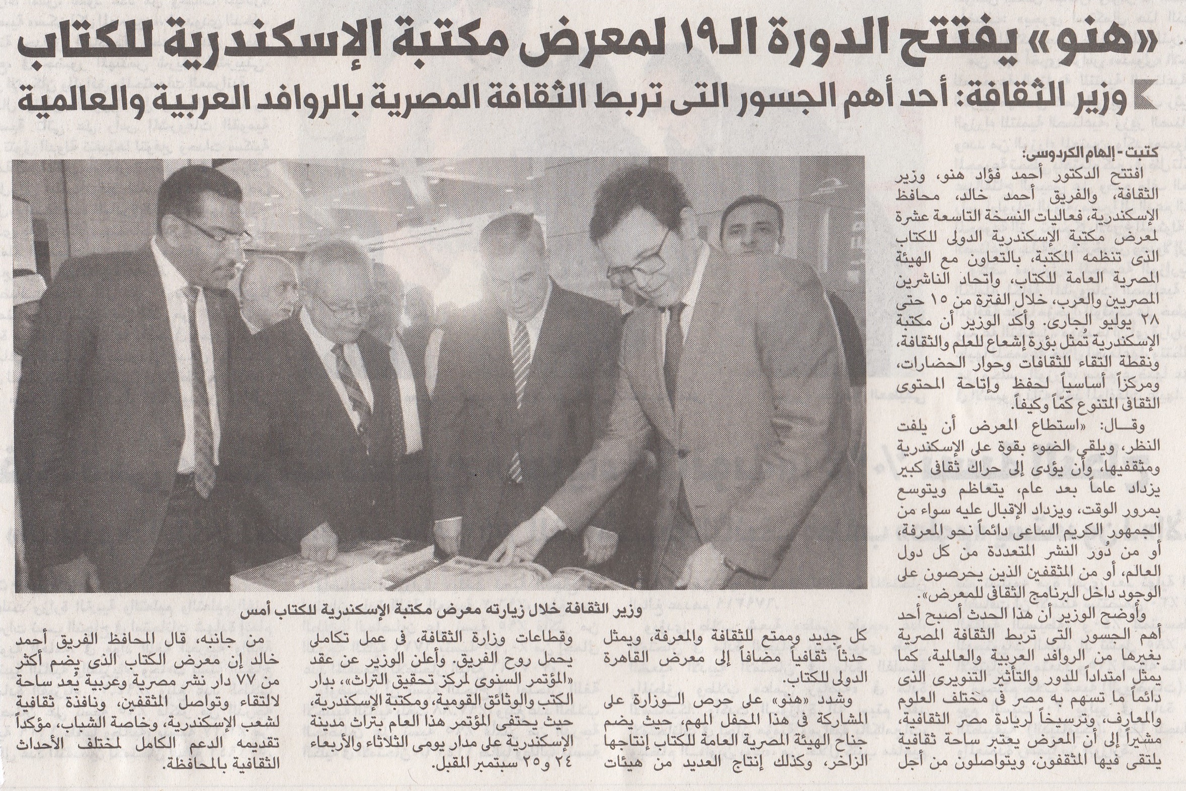 "هنو" يفتتح الدورة ال١٩ لمعرض مكتبة الإسكندرية للكتاب