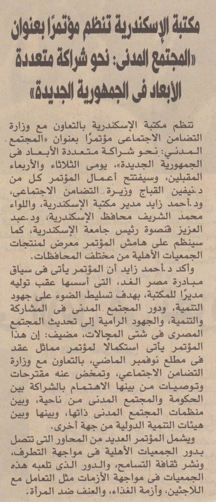 20 يونيو 2023 "المجتمع المدني: نحو شراكة متعددة الابعاد في الجمهورية الجديدة" بمكتبة الإسكندرية الأهرام