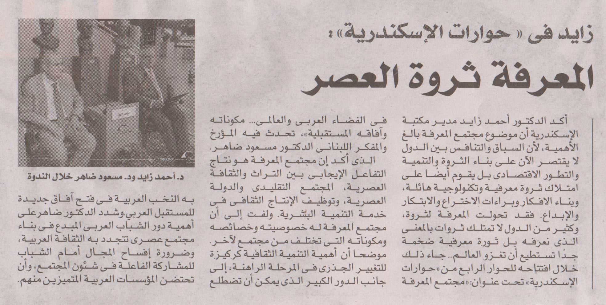 زايد في "حوارات الإسكندرية" : المعرفة ثروة العصر