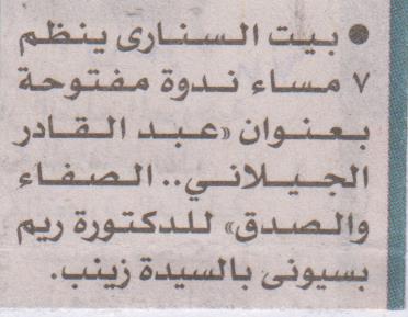 عبد القادر الجيلاني .. الصفاء والصدق ببيت السناري