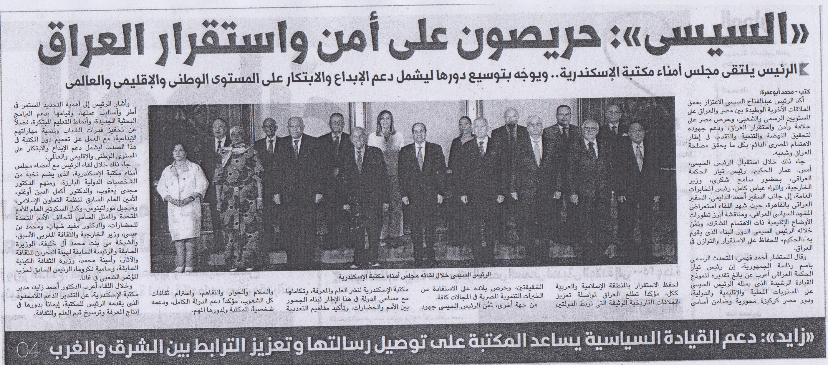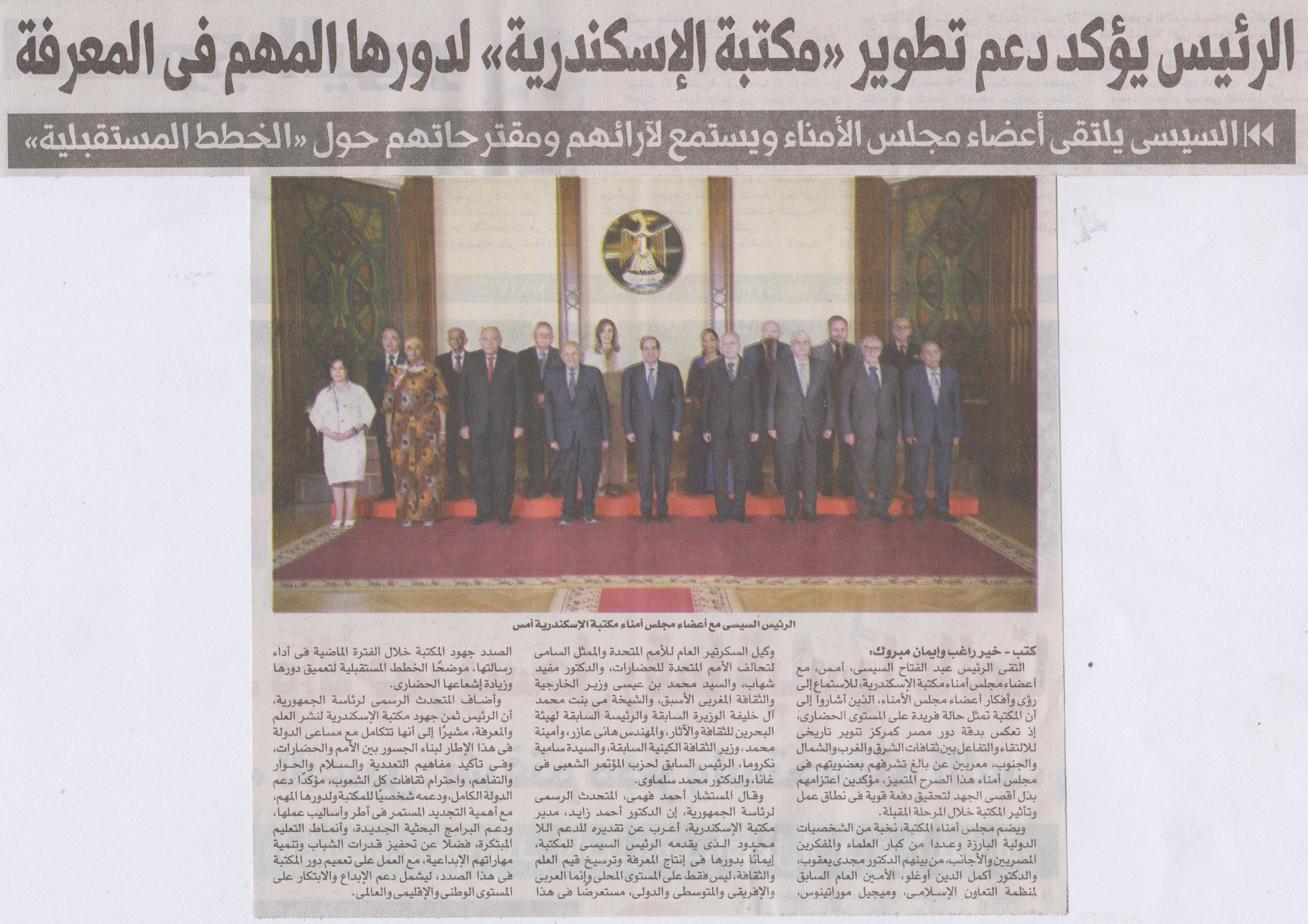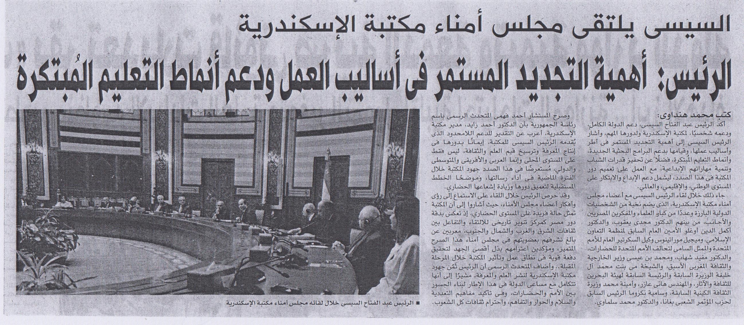 29 مايو 2023 الرئيس يلتقي مجلس امناء مكتبة الإسكندرية .. ويوجه بتوسيع دورها ليشمل دعم الإبداع والابتكار على المستوى الوطني والإقليمي والعالمي الوطن