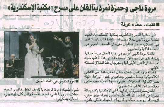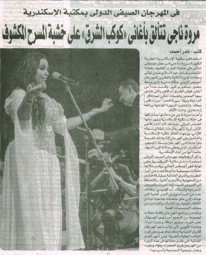 26 أغسطس 2025 في المهرجان الصيفي الدولي بمكتبة الإسكندرية: مروة ناجي تتألق بأغاني "كوكب الشرق" على خشبة المسرح المكشوف الجمهورية