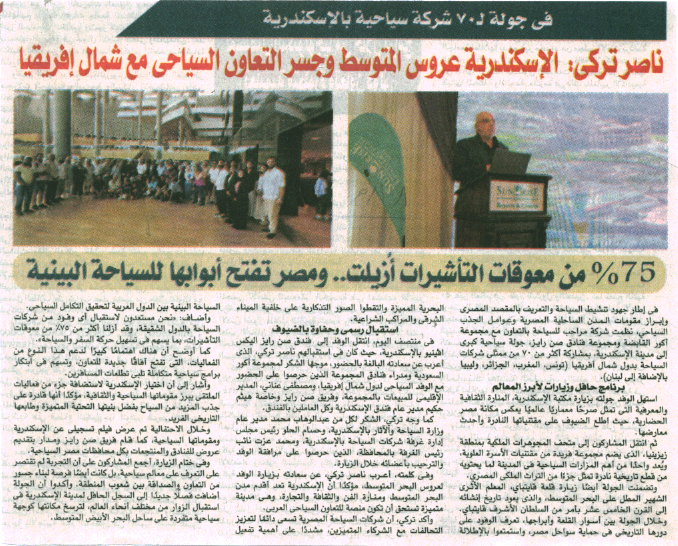 19 أغسطس 2025 في جولة لـ 70 شركة سياحية بالإسكندرية، ناصر تركي: الإسكندرية عروس المتوسط وجسر التعاون السياحي مع شمال إفريقيا الوفد