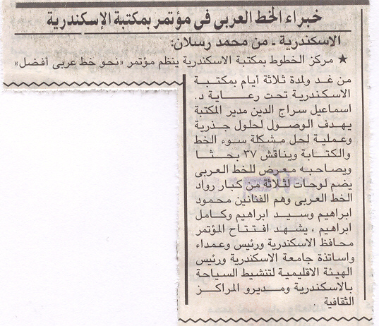 اليوم .. مؤتمر فى مكتبة الاسكندرية يدعو الى خط عربى افضل